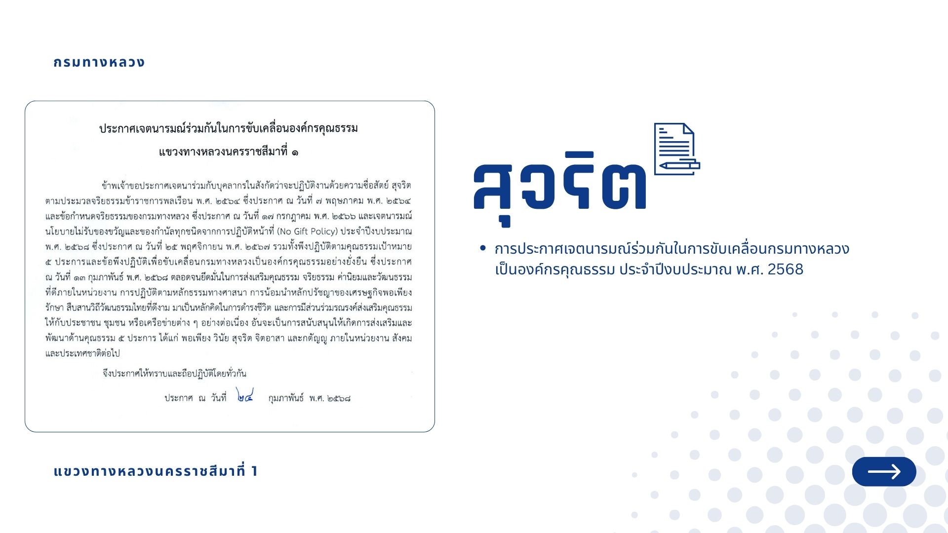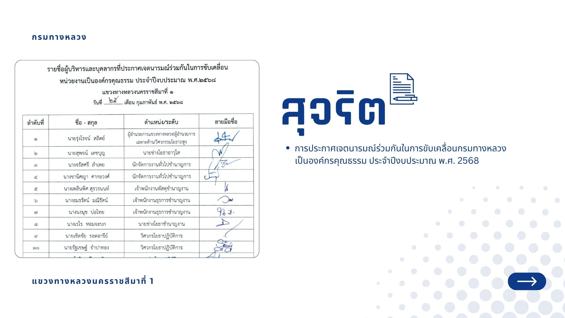 ข้อมูลข่าว : แบบรายงานผลการดำเนินงานตามแผนปฏิบัติการส่งเสริมคุณธรรมจริยธรรม แขวงทางหลวงนครราชสีมาที่ 1 ปีงบประมาณ พ.ศ.2568